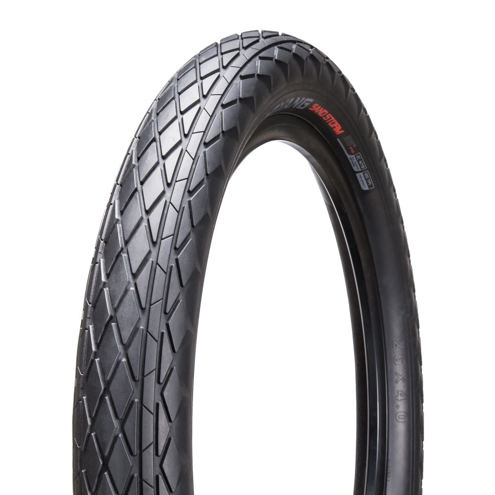 Sandstorm dækket er et godt og kraftigt dæk. Dækket er godkendt op til 200 kg, og er derfor perfekt på cykler med tung belastning. Dækkets bredde gør at den har et solidt vejgreb, og støddæmpende effekt på ujævne veje.