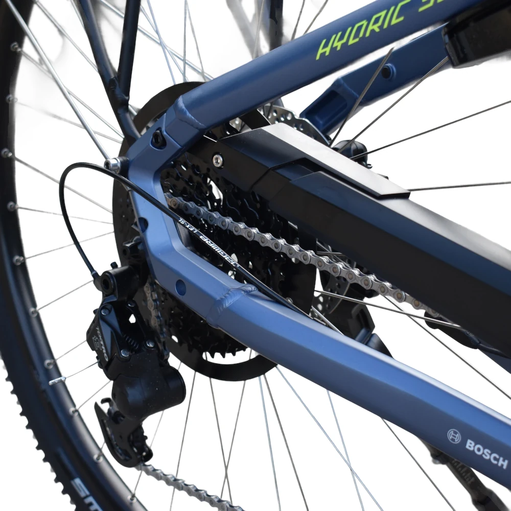 Kayza Hydric SUV LTD Mod. 24 kommer med en stærk og pålidelig Bosch Active Line Plus centermotor, der giver dig en jævn og effektiv støtte op til 25 km/t, mens det kraftige Bosch PowerPack 500 batteri sikrer en imponerende rækkevidde – perfekt til lange ture uden bekymring om opladning. Cyklen er udstyret med en let aluminiumsramme, som kombinerer styrke og letvægt, hvilket gør den nem at håndtere og manøvrere.