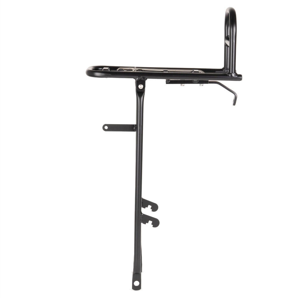 Stilfuld og funktionel 14 mm aluminiumsrør frontholder med AVS. Frontbegagebæreret gør det muligt at montere kasser og kurve med Atran Velo AVS system.