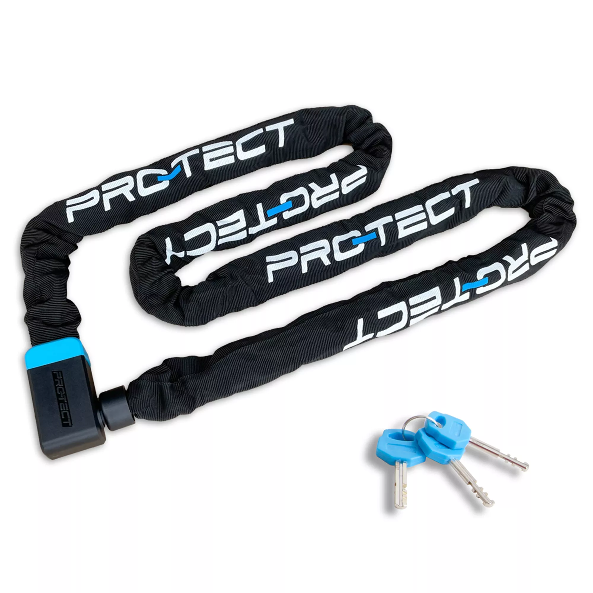 Med denne 180 cm lange kædelås fra Pro-tect, kaldet Cubic, kan du nemt og sikkert låse enhver type cykel. På grund af låsens længde er den ideel til sikring af ladcykler. Låsen er ART 2-godkendt, hvilket betyder, at cyklen kan forsikres mod tyveri.