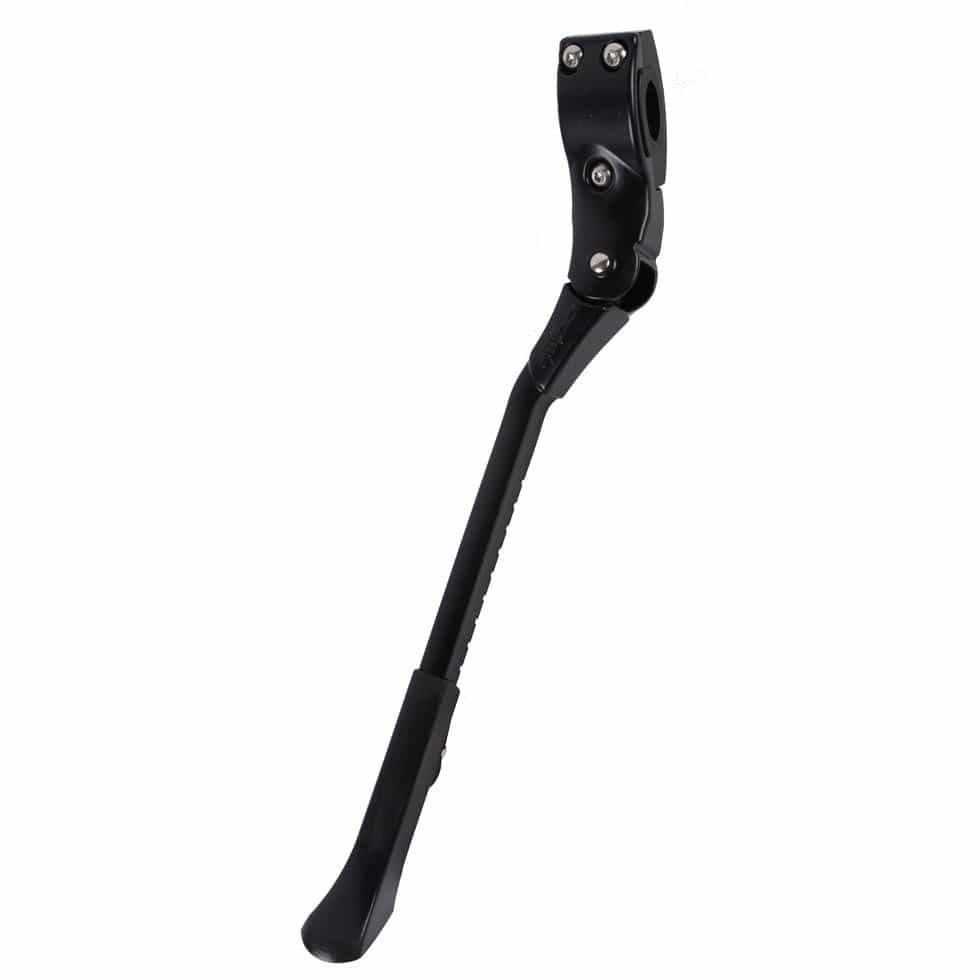 Universal støtteben til montering på bagstag. Hurtig og nem at installere. En fornøjelse at bruge. Den justerbare længde fungerer til cykler med hjul fra 24″-28″.