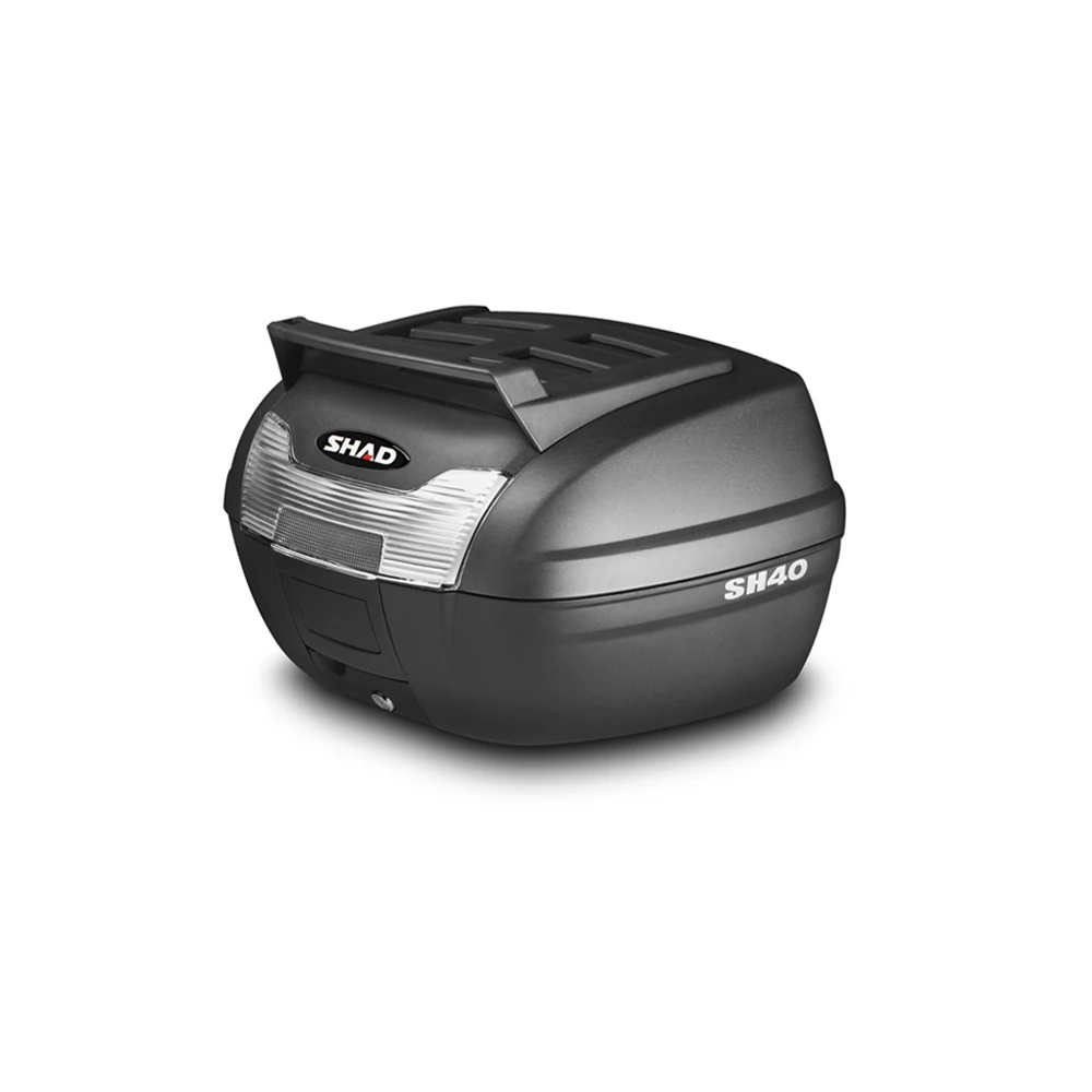 Topboks til scooter 40L SH40 giver dig rigeligt med plads til dine ejendele. Den har kapacitet til to pilothjelme eller én hjelm og ekstra bagage såsom handsker, taske eller regntøj. Det gør den perfekt til både solo- og to-personerskørsel.